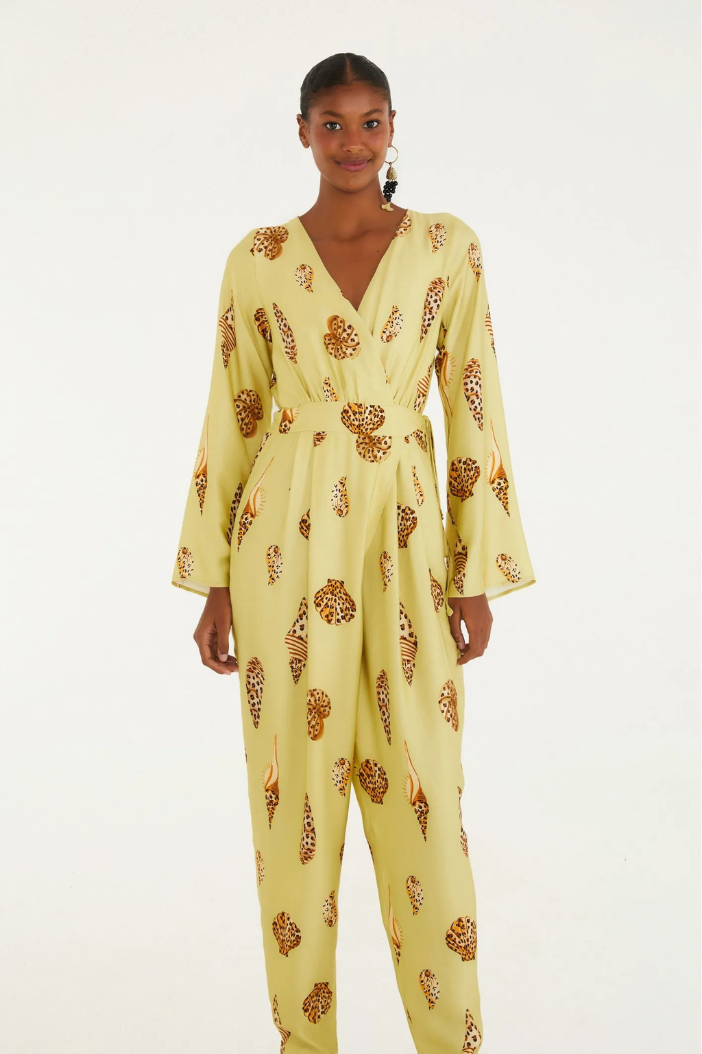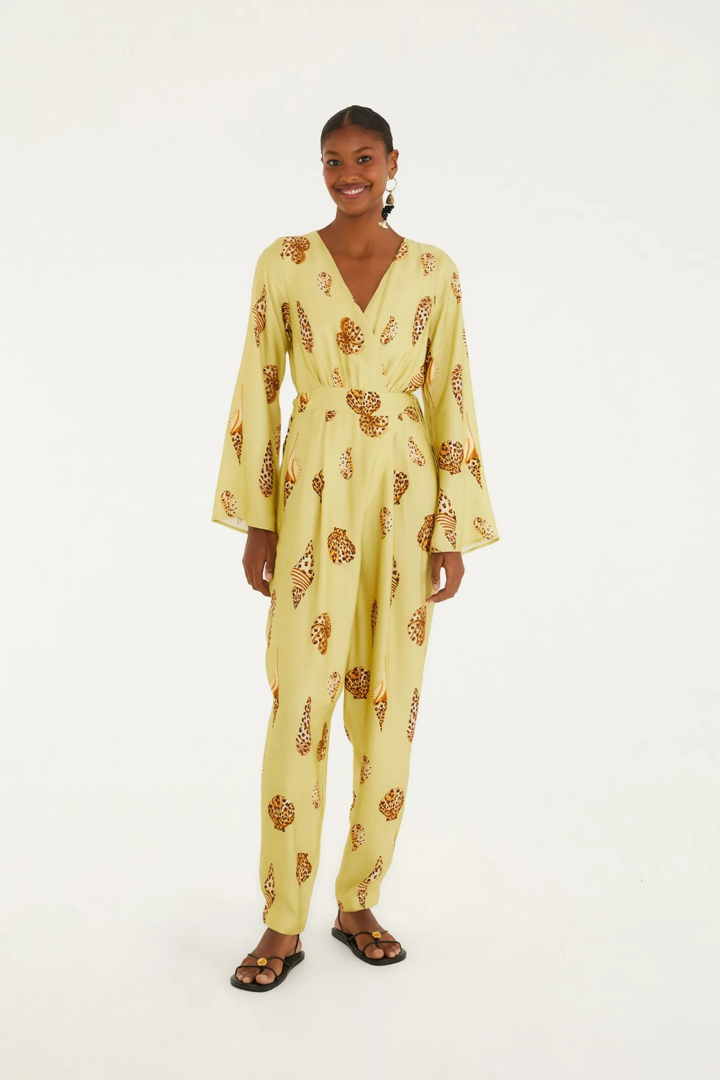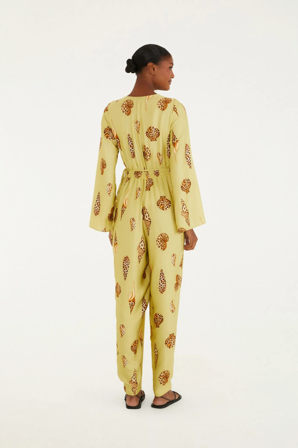 Macacão concha pintada. destaque-se com o decote em v e mangas amplas, que trazem uma fluidez única ao look. com cintura marcada por elástico leve e caimento solto, é perfeito para ocasiões casuais ou um passeio descontraído. a peça combina conforto e estilo em uma harmonia irresistível.